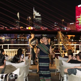 Sau đó, Xe và HDV, đưa Quý khách tham gia trải nghiệm Show diễn Cồng Chiêng Tây Nguyên tại khu vực Langbiang.